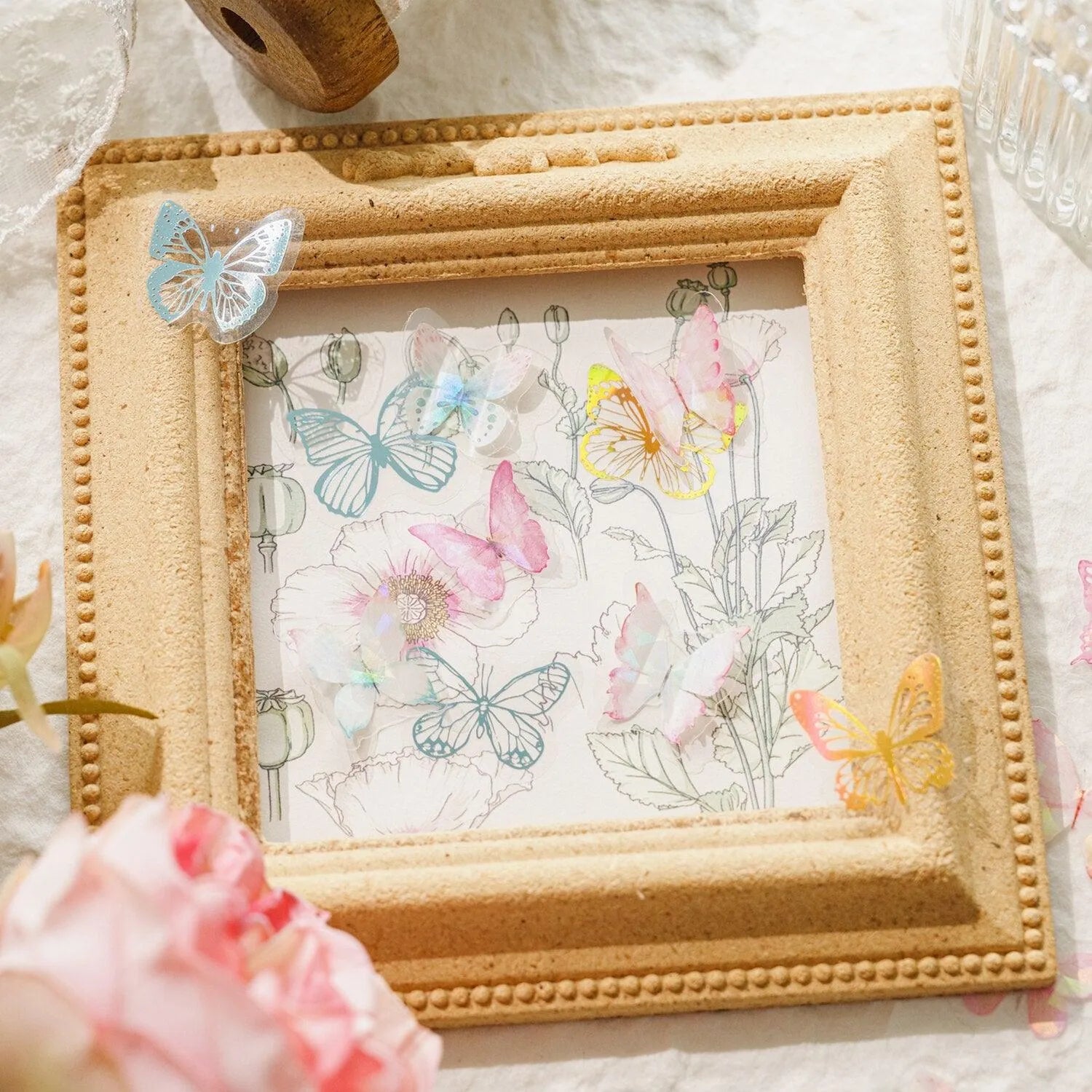 Gold-Lined PET Stickers Pack – 3 Sheets of Retro and Butterfly Designs