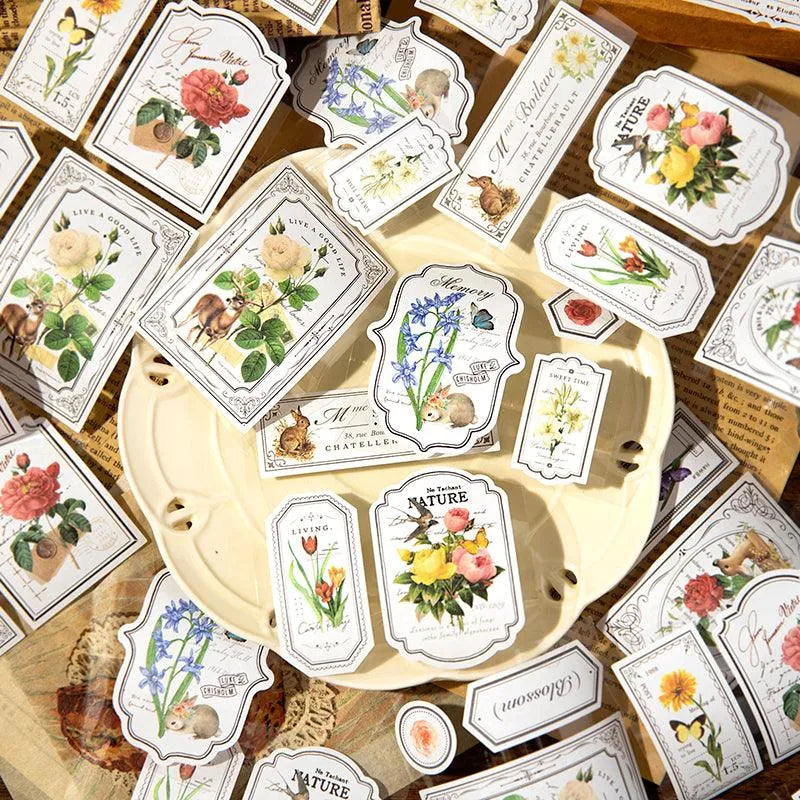 Vintage Botanical Die-Cut Washi Sticker Roll