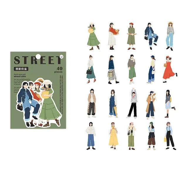 Street Style Girls Sticker Set – 40 Fashionable Pieces