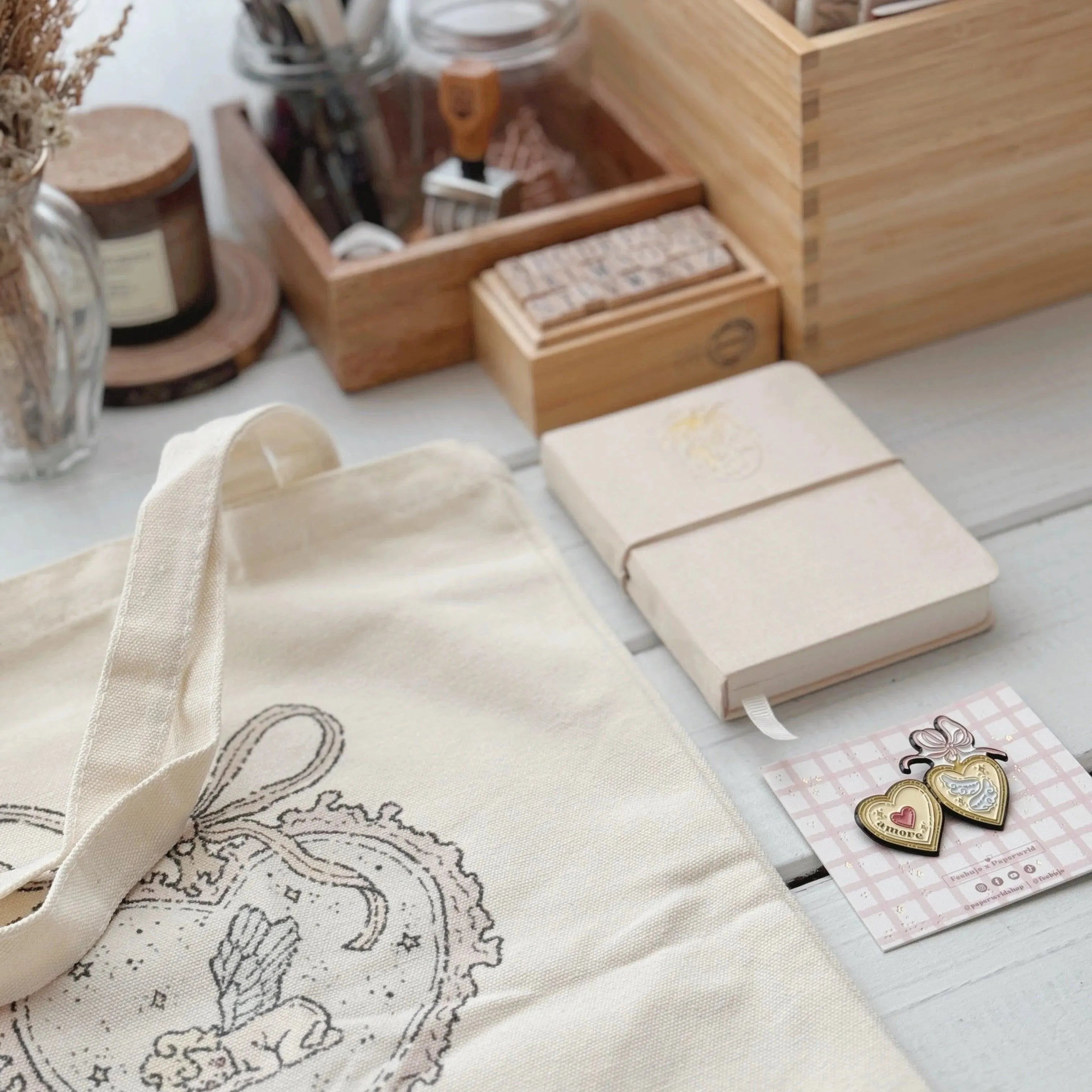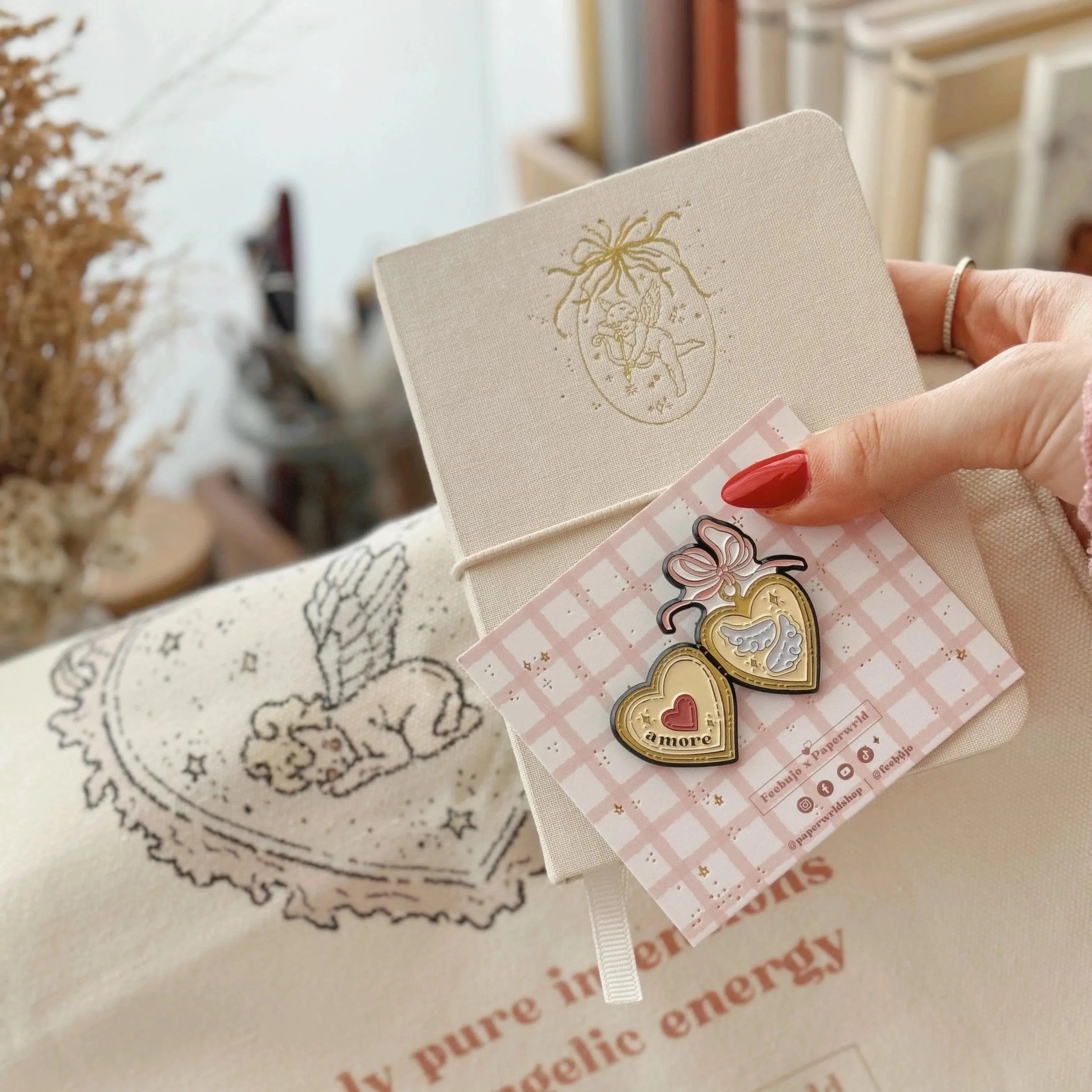 Looking to add more peace and positivity to your everyday life? The Angel Vibes Set from Feebujo and Paperwrld has everything you need to infuse your days with calming, angelic energy. This set includes a beautifully crafted linen journal, a stylish tote bag, and a free enamel pin—all designed to keep you grounded, inspired, and surrounded by good vibes.