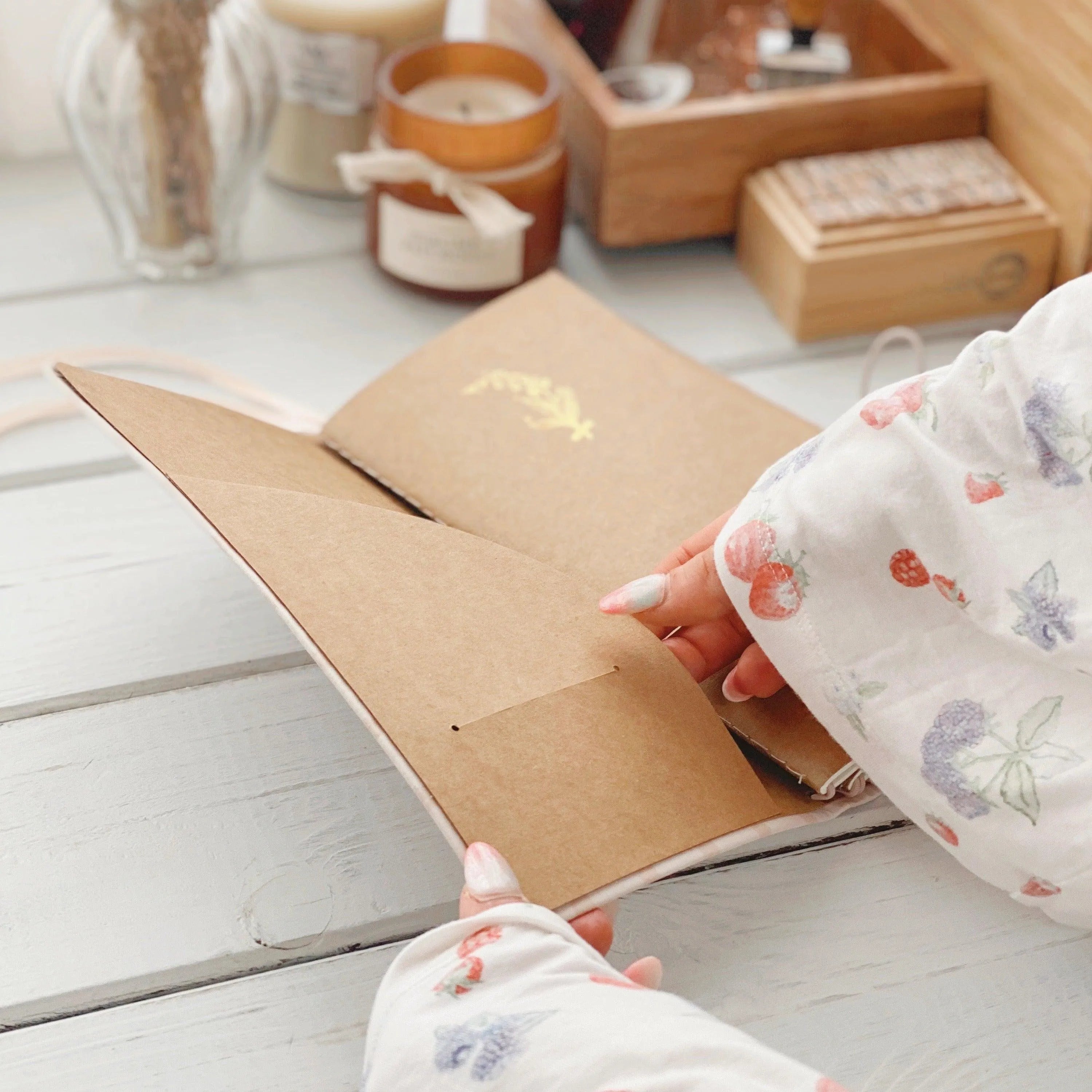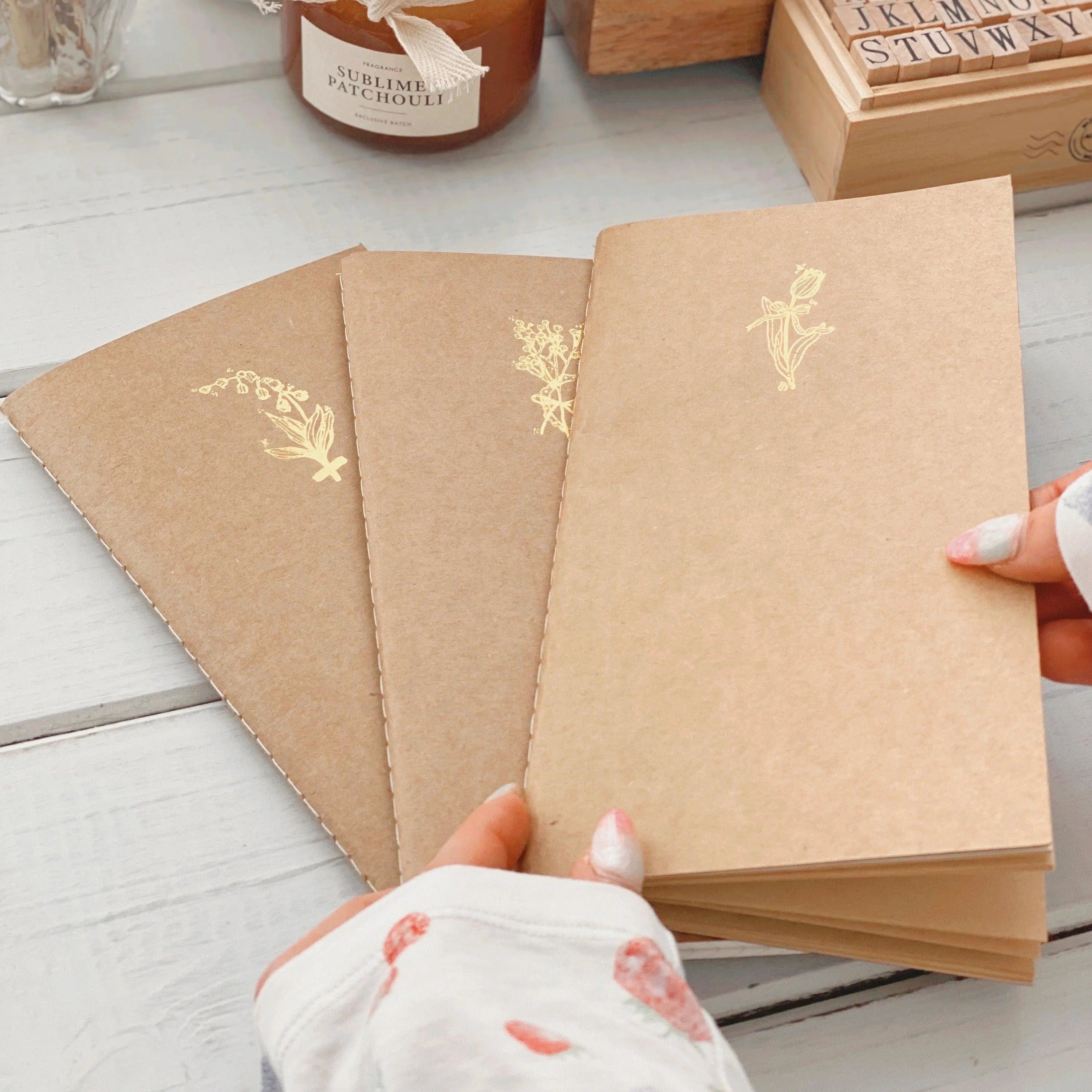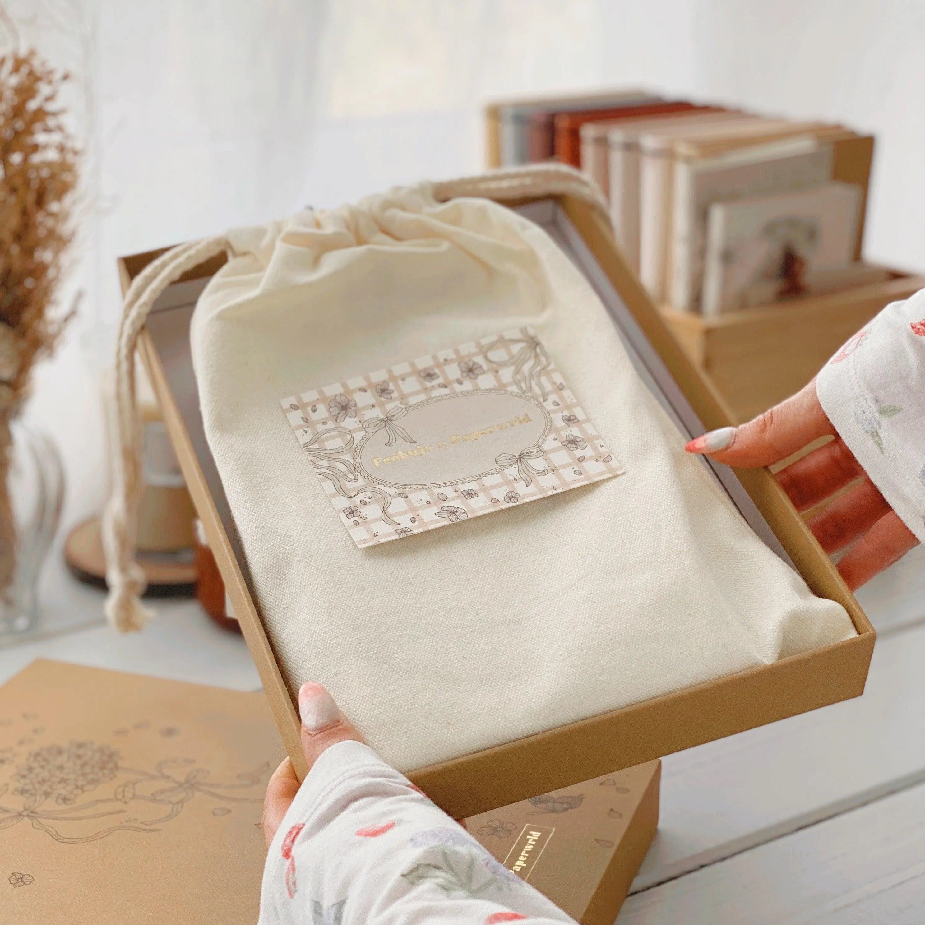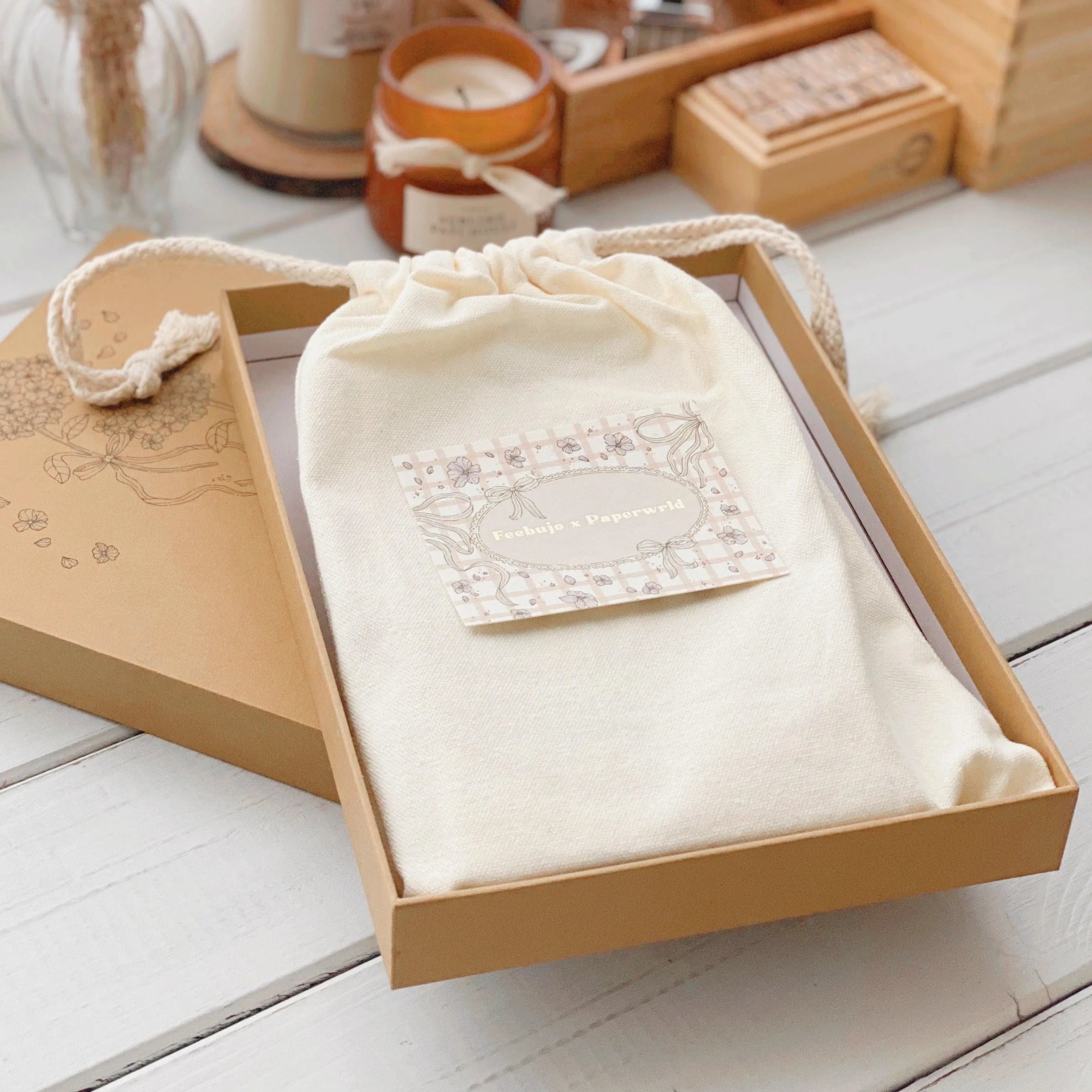Thank You Card: To express our gratitude, a thank-you card crafted from absorbent paper with gold foil details (10 cm x 8 cm) is included.