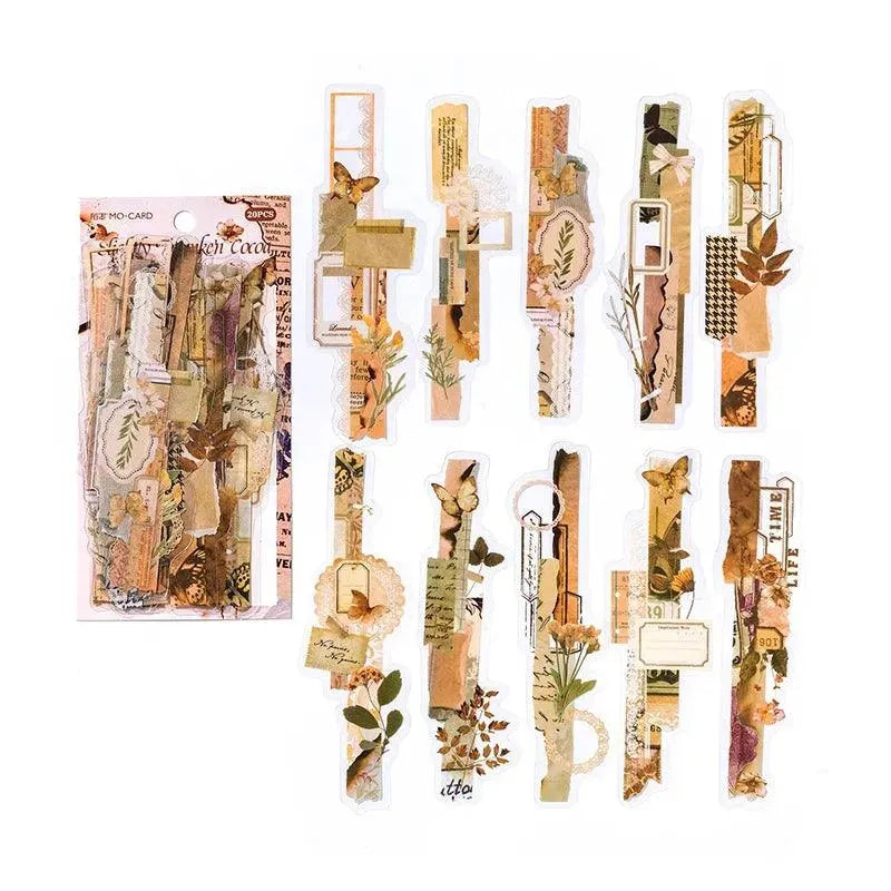 These PET stickers bring a charming blend of vintage aesthetics and modern design, perfect for adding a unique touch to your journals, scrapbooks, planners, and DIY projects. Each set contains 20 meticulously crafted stickers, featuring a diverse array of vintage-inspired patterns that will make your creations stand out.